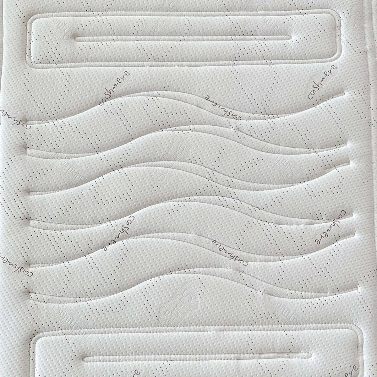 Fodera elasticizzata in poliestere con lato misto cashmere 40%, trapuntatura piazzata. Fascia decorativa perimetrale in tessuto lavorato. Lato B firm in fibra di poliestere deluxe gr 400. Fodera sfoderabile.