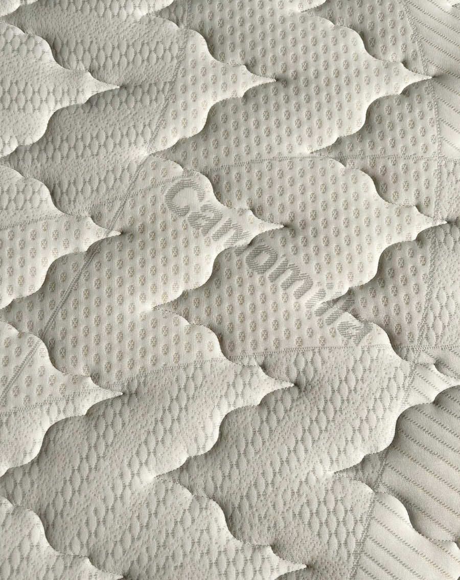 Fodera elasticizzata in poliestere con lato contatto misto cashmere gr 350, trapuntata a disegno continuo con fascia decorativa in tessuto con disegno damascato. Lato B firm imbottitura sartoriale in velluto con lavorazione sartoriale a rilievo. Lato B firm in fibra di poliestere deluxe gr 350. Trapuntatura disegno damascato. Fodera sfoderabile.